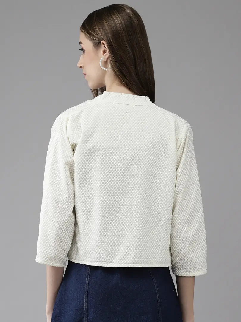 Aarika Womens Cream-Green Color Cotton Embroidery Ethnic Jakcet