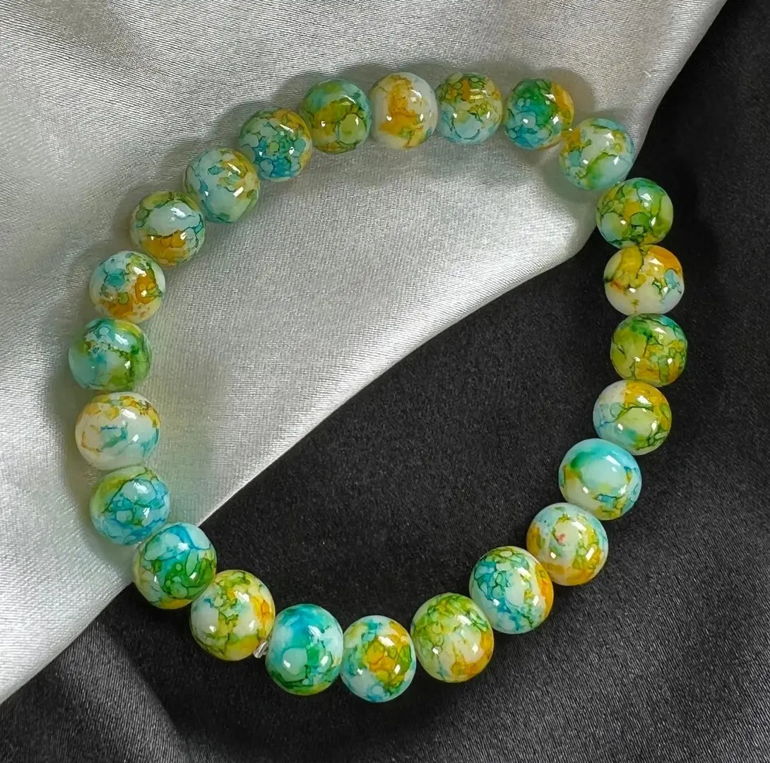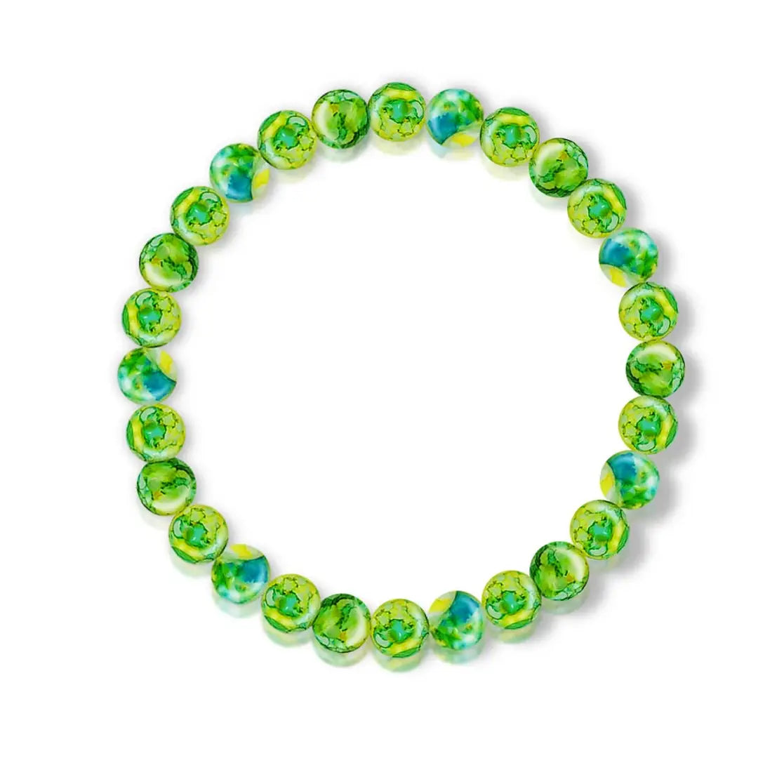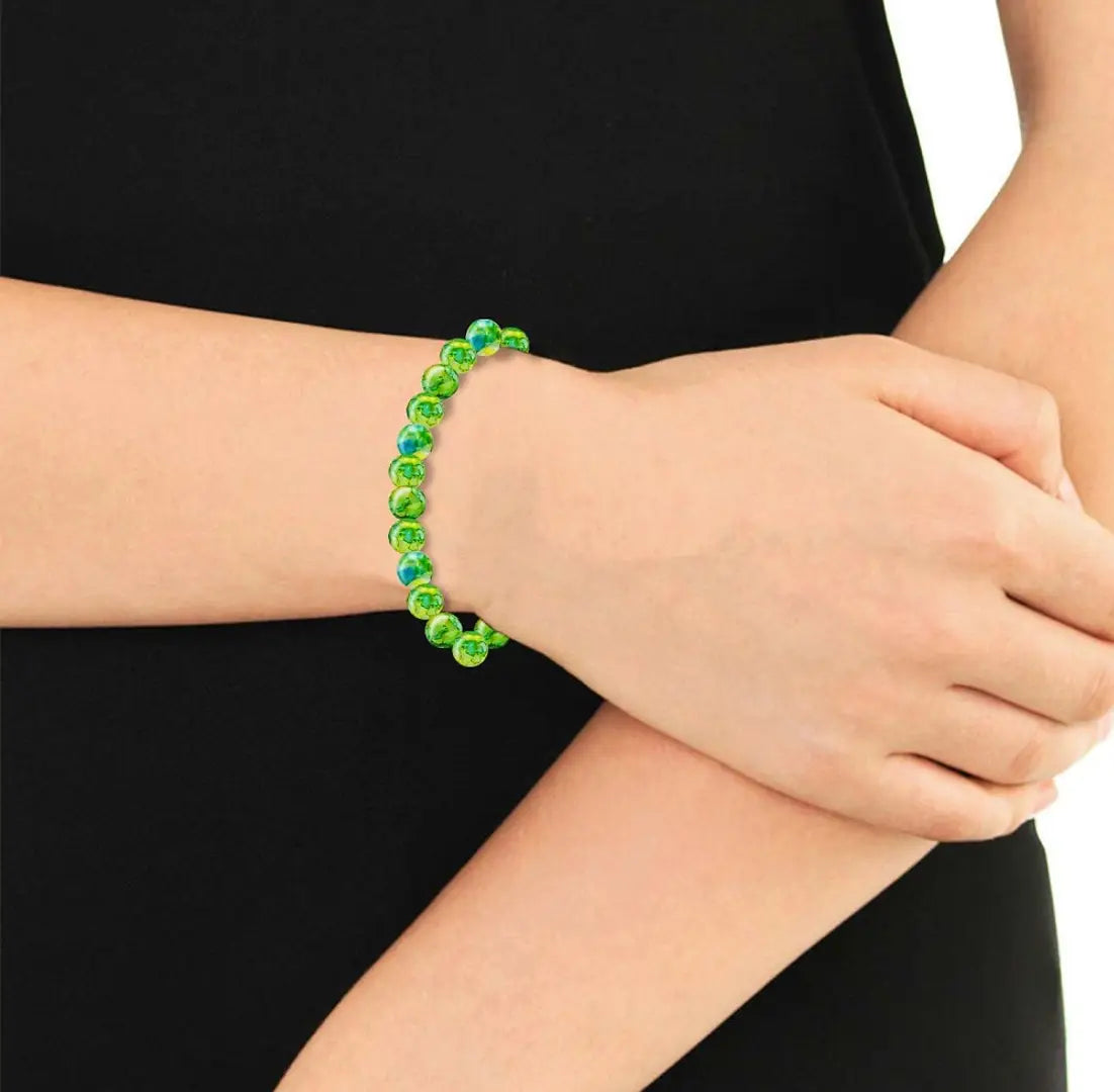 Uniqon (Stretchable) Green Color 8mm Moti Bead Pearl Natural Feng-Shui Healing Howlite Crystal Gem Marble Stone Elastic Wrist Band Bracelet For Boy’s Girl’s